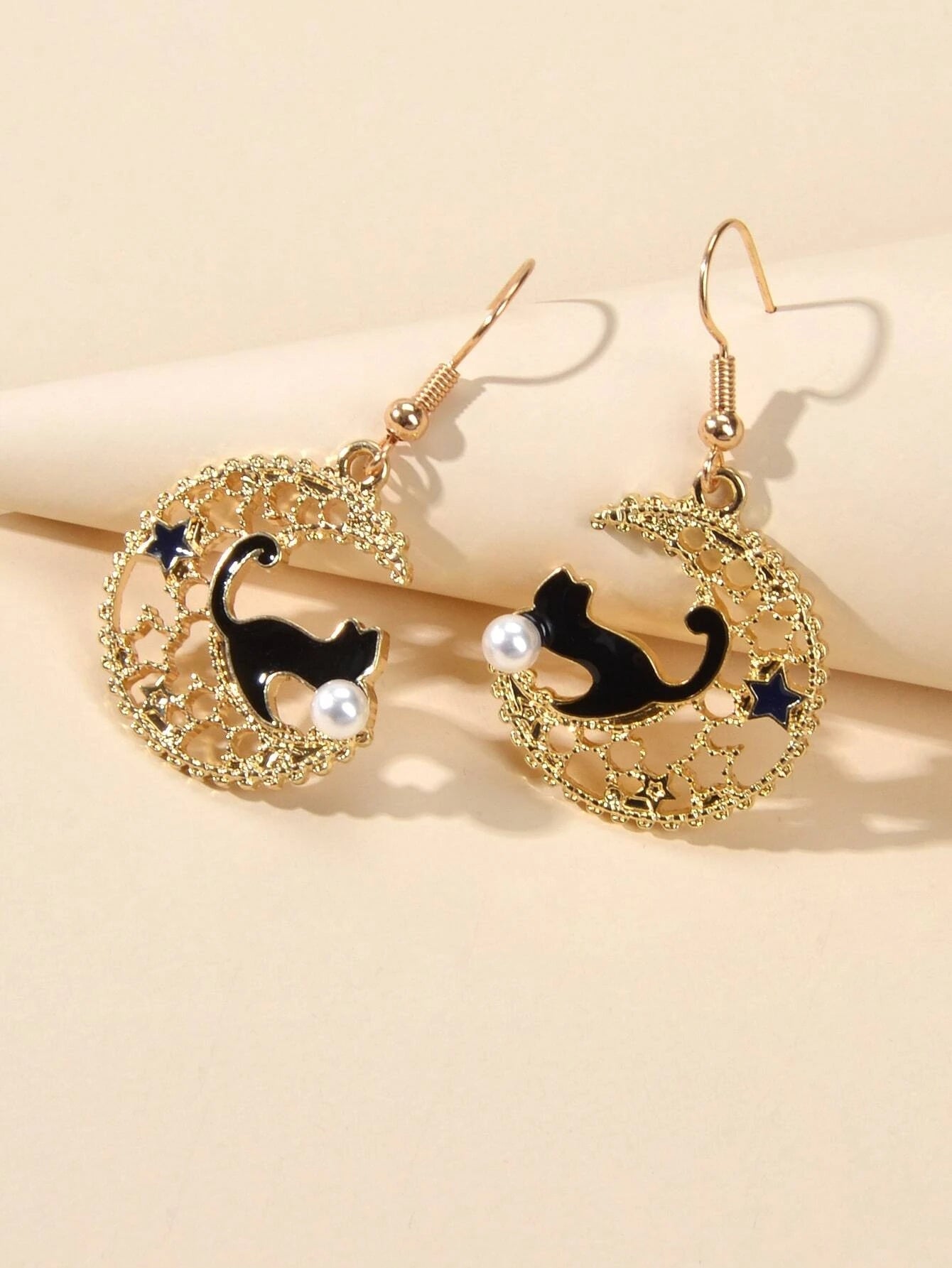 Orecchini Luna e Gatto Smaltati – Oro e Nero